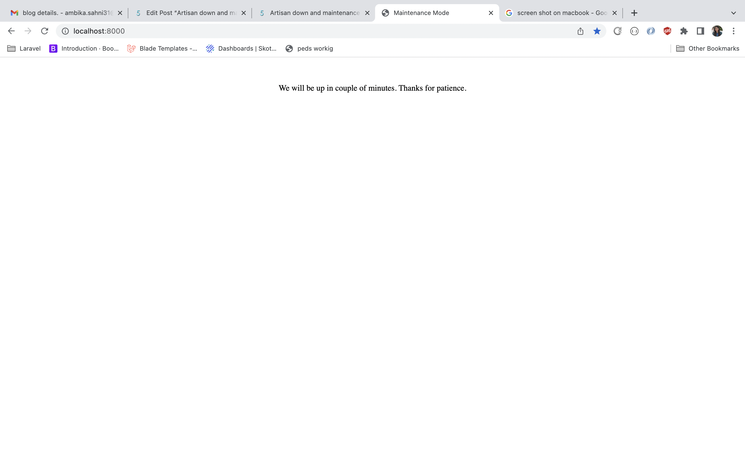 So now after running artisan down , we will get the following page instead of default 503 error page.