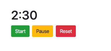 {{totalMinutes}}:{{totalSeconds}}counter and along with that three control buttons, which we have styled using Boostrap class styling. - The default state of the timer is stopped.