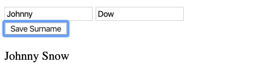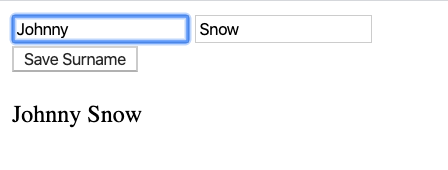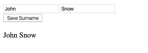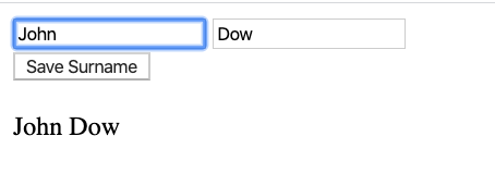 Running this application will display two input fields, one for the name and one for the surname, and one button specifically to save the surname.