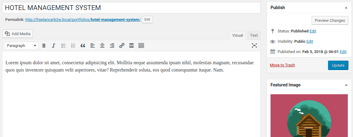 - Upload and Add Feature Image in right side of Post , which you want to use as the Project Image.