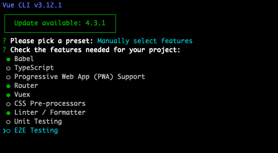 The cool thing about this is that it provides you with an interactive process to choose the features you want in your new Vue Project.