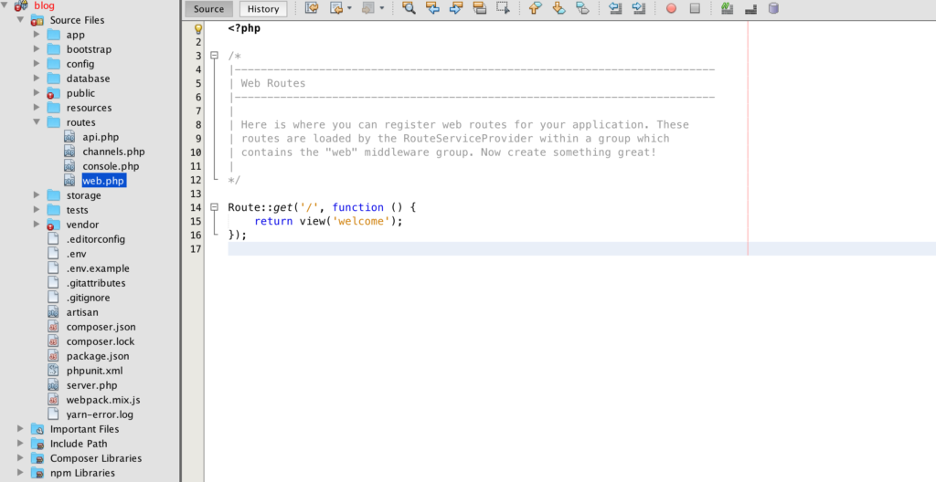 I have created a new Laravel application named blog for this tutorial. Let's get started to understand the Routing concept by example in this application.