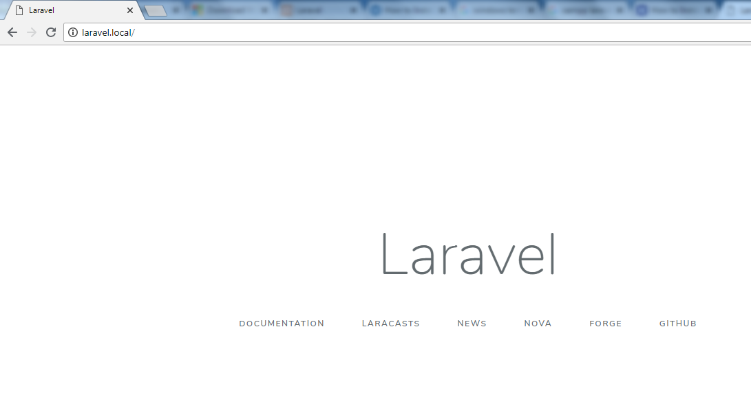 Restart your apache and access laravel.local on your browser you should be able to see this screen.