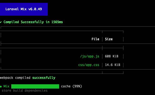 Since we have the configuration ready, we can now run the build process so that Mix generates the output CSS file with tailwind classes in it.