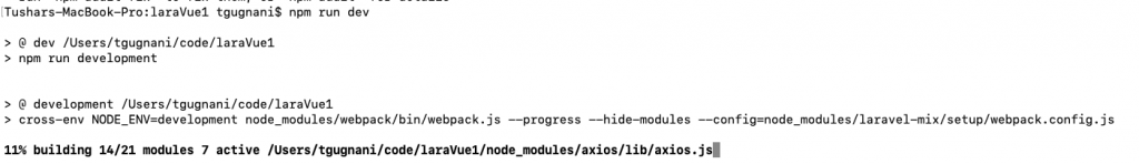 webpack.mix.js. The build is required to convert the Vue code into simple javascript code which almost all the browsers can understand. Once the build is done, the js file will be ready at