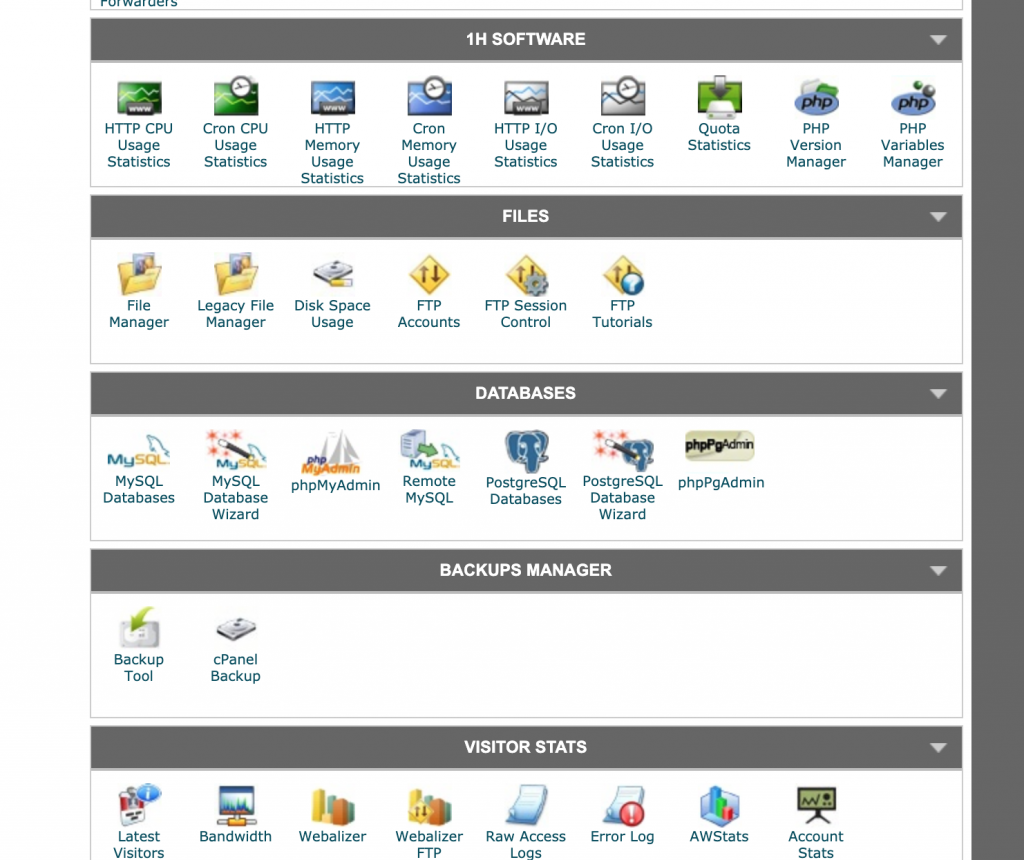 Choose the option to access cPanel securely. Once you are into cPanel, you should see a webpage with a lot of different options to play with.