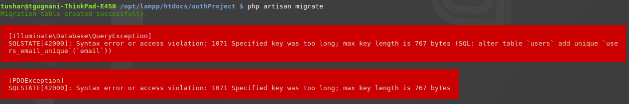 "Syntex error or access violation : 1071 Specified key was too long; max key length is 767 bytes"