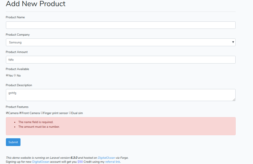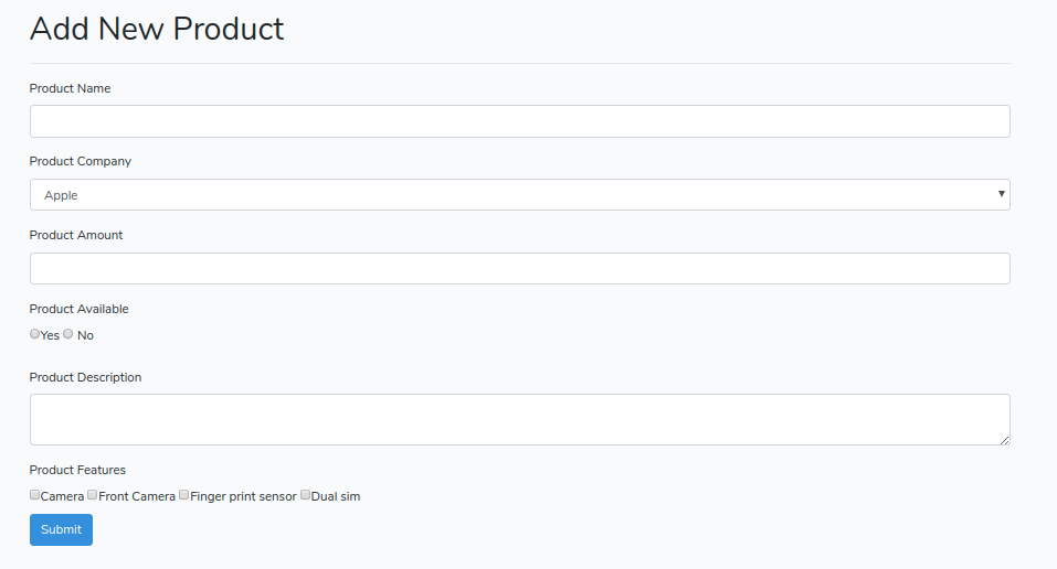 Sample Product Form Page