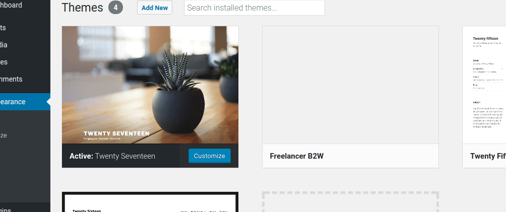 Note: As you have noticed, currently the default theme image for our Underscores Freelancer B2W theme is blank. If you wish to have a good looking default image. Go to the theme folder (freelancerb2w) and replace the screenshot.png with your desired default image for the theme.