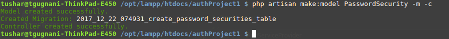 php artisan make:model PasswordSecurity -m -c