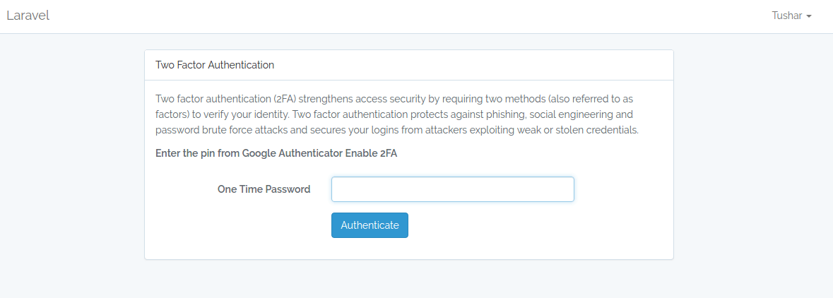 Laravel 2FA Step 1[/caption]