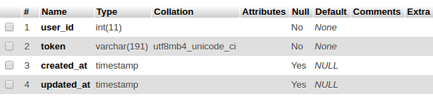 $table->string('token');