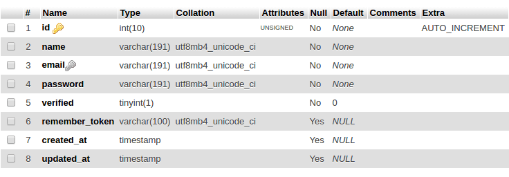 With this, you should have the verify_users table created in your database with following structure.