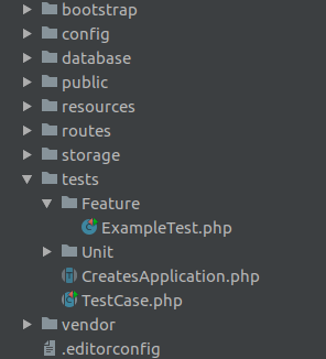 Notice, that there is already a ExampleTest.php available in the folder. This is where we are looking to create a new test.