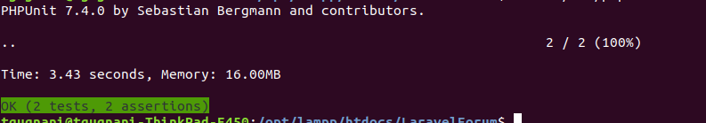 Run the test again, and it should give you green. There you go, we have completed writing first Feature Test in Laravel.